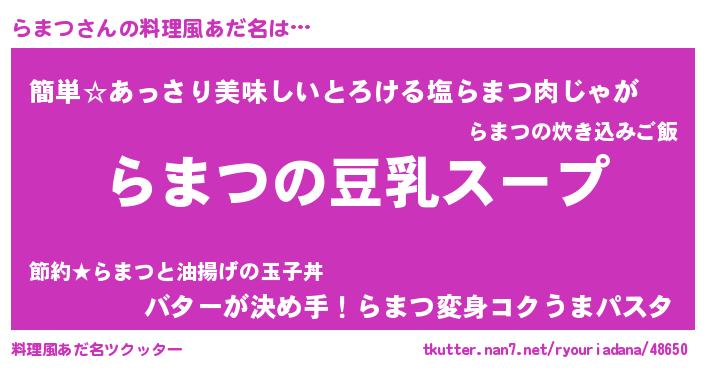 | 女子向けラノベタイトル風あだ名 | 『らまつは平凡を望む』『らまつ恋絵巻』 |