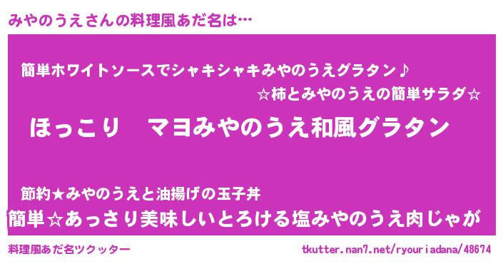 | 意味不明あだ名 | 『住所不定無職みやのうえ(53歳)』 |