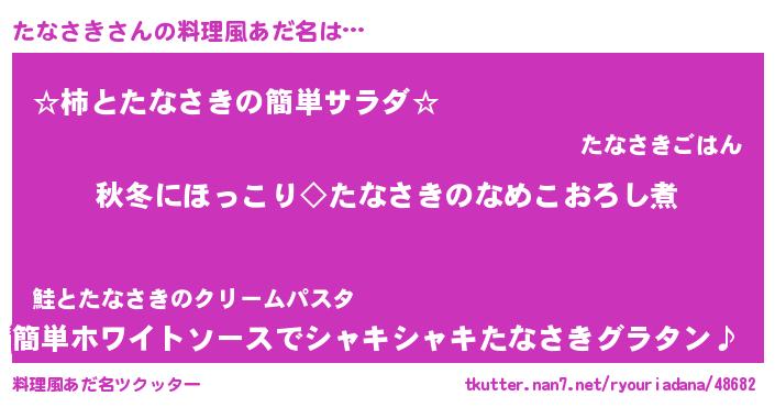 | 男性向けラノベタイトル風あだ名 | 『たなさきに滅ぼされるだけの簡単なお仕事です』 |