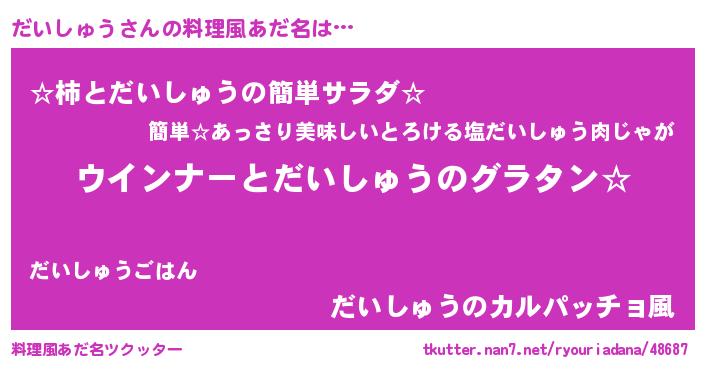 | 意味不明あだ名 | 『だいしゅうフォーエバー』 |