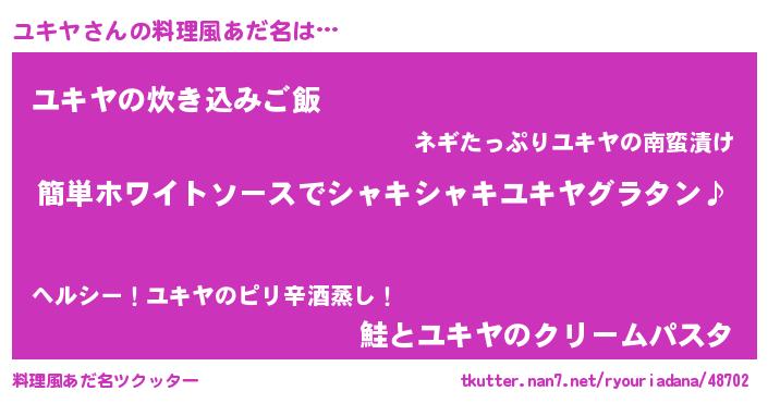 | 女子向けラノベタイトル風あだ名 | 『ユキヤ様がみてる』『死神ユキヤの再婚』 |