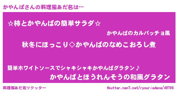 | 男性向けラノベタイトル風あだ名 | 『かやんばに滅ぼされるだけの簡単なお仕事です』 |