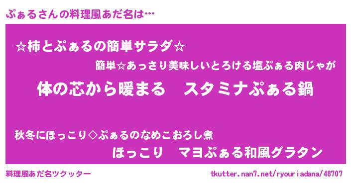 | 自動車の名前っぽいあだ名 | 『プクア』『フェプーァ』『ポプシェ』 |