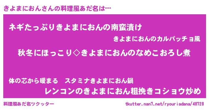 | ピコ太郎風あだ名 | 『キコ八郎』『ピキ十郎』『キヨ八郎』 |
