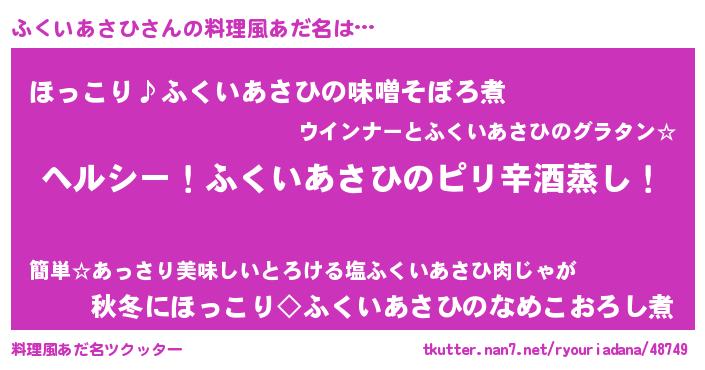 | ピコ太郎風あだ名 | 『フコ史郎』『ピフ三郎』『ピコフ郎』 |