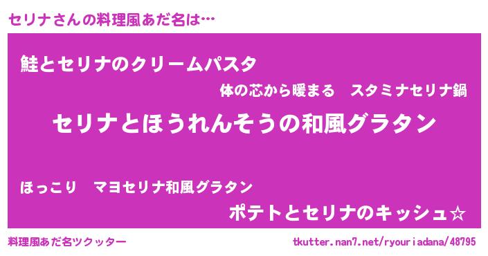 | ヘコむあだ名 | 『セリお』『豆乳』『セリナ(小並感)』 |