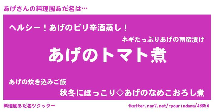 | 女子向けラノベタイトル風あだ名 | 『あげ夫妻のなれそめ』『闇のあげ』 |