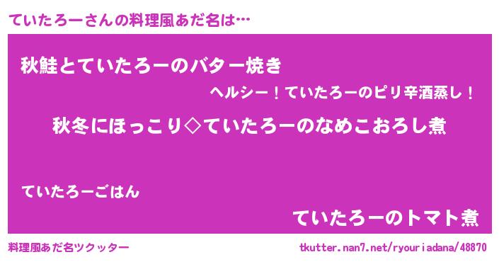 | 男性向けラノベタイトル風あだ名 | 『ていたろーに滅ぼされるだけの簡単なお仕事です』 |