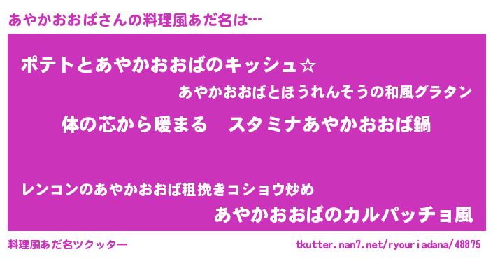 | ポケモン風あだ名 | 『アヤカダネ』『ヒアヤカオオバ』 |