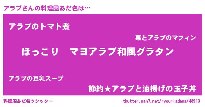| 男性向けラノベタイトル風あだ名 | 『この素晴らしい世界にアラブを!』 |