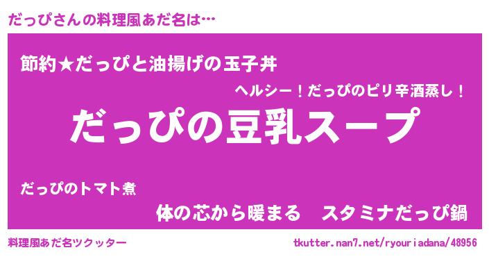 | 胡散臭い通販商品みたいなあだ名 | 『信頼と実績のサプリメント…その名も「だっぴ」』 |