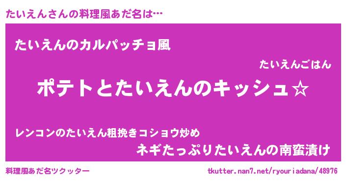| 女子向けラノベタイトル風あだ名 | 『たいえんの卵を拾いまして』 |