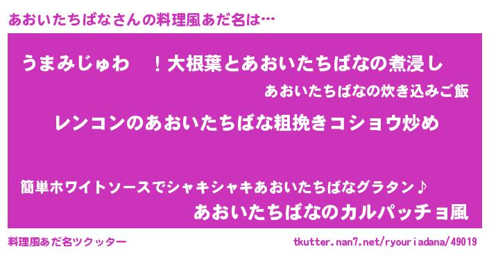 | 恥ずかしいあだ名 | 『アオイタチバナデラックス』『あおちん』 |