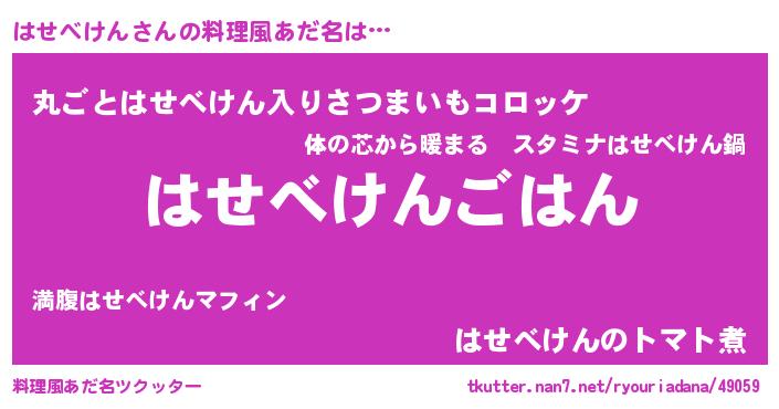 | 意味不明あだ名 | 『めかぶ科はせべけん属』 |