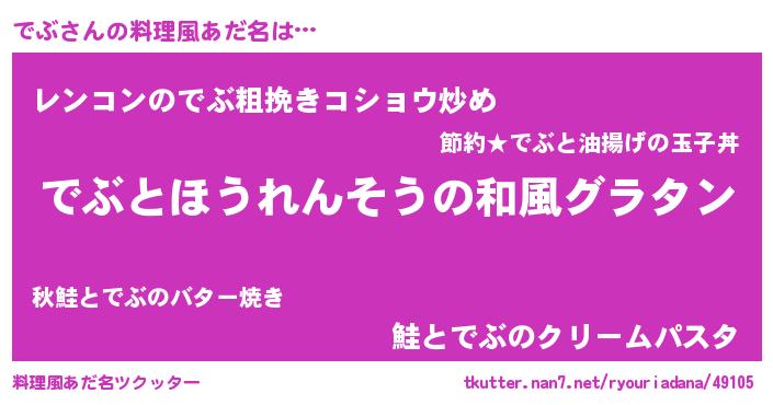 | 女子向けラノベタイトル風あだ名 | 『でぶの玉の輿計画!』『死神でぶの再婚』 |