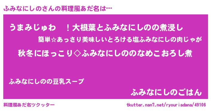 | ヘコむあだ名 | 『なまこ酢』『ふみなにしの(笑)』 |