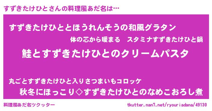 | ヘコむあだ名 | 『酢こんぶ』『すずきたけひと(笑)』 |