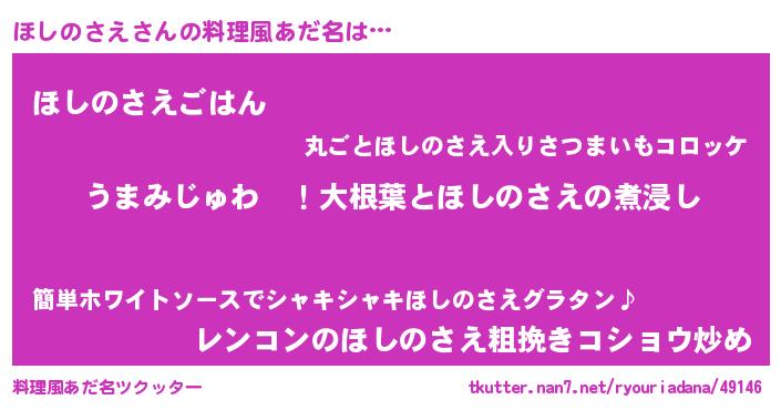 | ファンタジー風あだ名 | 『エターナルホシノサエー』『ゼホシトゥ』 |