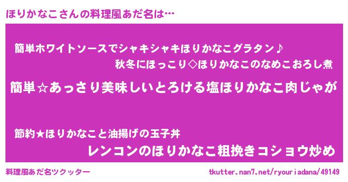 | ヘコむあだ名 | 『ほりかなこ(苦笑)』『ほり太郎』 |