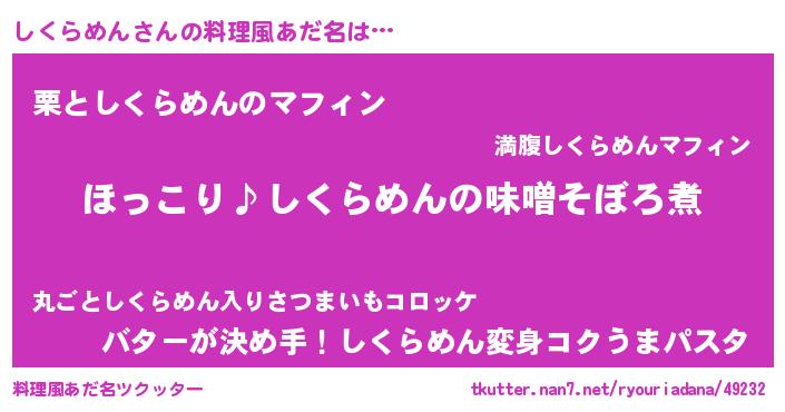 | 胡散臭い通販商品みたいなあだ名 | 『必ず成功するブレスレット…その名も「しくらめん」』 |