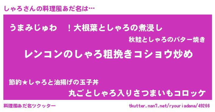 | 男性向けラノベタイトル風あだ名 | 『魔法科高校のしゃろ』『しゃろの憂鬱』 |