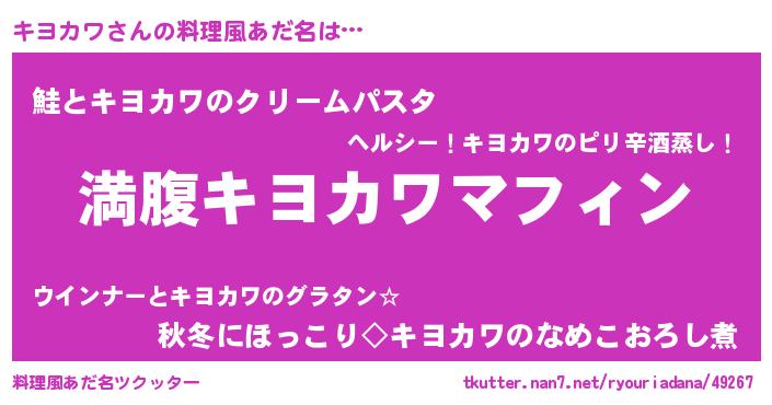 | ヘコむあだ名 | 『キヨカワ(遠い目)』『なまこ酢』 |