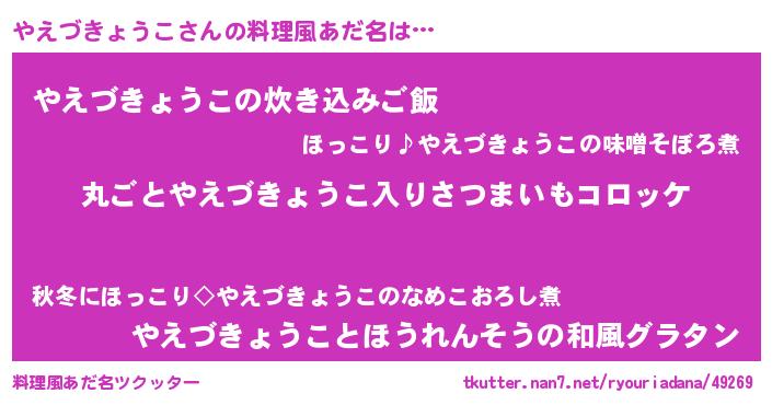 | 意味不明あだ名 | 『住所不定無職やえづきょうこ(12歳)』 |