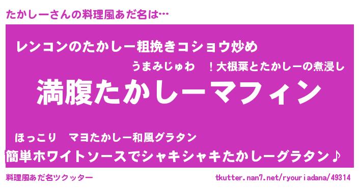 | 意味不明あだ名 | 『永久保存たかしー』『自称たかしー』 |