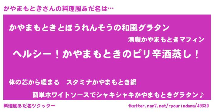 | ヘコむあだ名 | 『かやっ子』『かやまもとき(爆)』 |