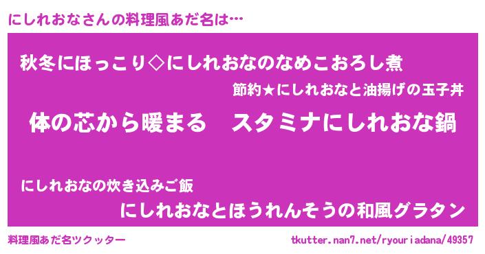 | 恥ずかしいあだ名 | 『にしっちょ』『プリティーにしれおな』 |