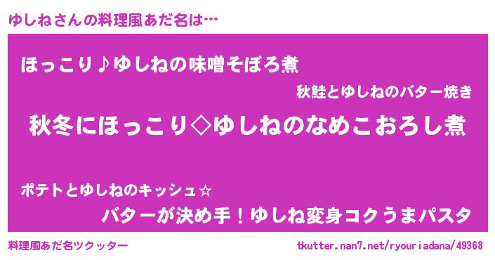 | ヒーロー風カッコイイあだ名 | 『スーパーユシネ』『正義の使者ゆしね』 |