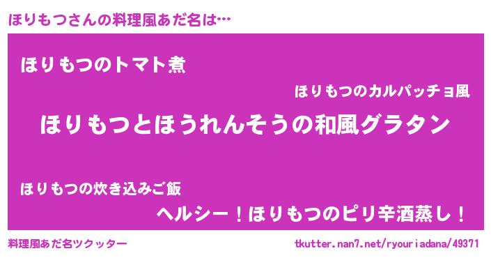 | 意味不明あだ名 | 『なめこ科ほりもつ属』『自称ほりもつ』 |