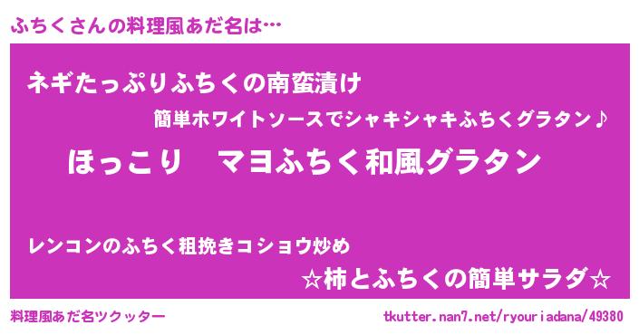 | 男性向けラノベタイトル風あだ名 | 『この素晴らしい世界にふちくを!』 |