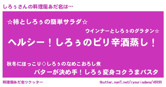 | ヒーロー風カッコイイあだ名 | 『最強戦士シロゥ』『正義の使者しろぅ』 |