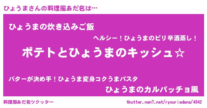 | 女子向けラノベタイトル風あだ名 | 『ひょうまの卵を拾いまして』 |