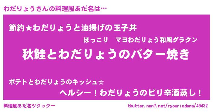 | 胡散臭い通販商品みたいなあだ名 | 『来世でも幸せになれる健康食品…その名も「わだりょう」』 |