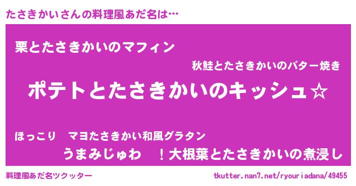 | 胡散臭い通販商品みたいなあだ名 | 『伝統あるサプリメント…その名も「たさきかい」』 |