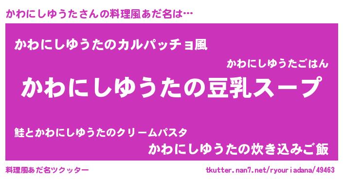 | 男性向けラノベタイトル風あだ名 | 『ダンジョンにかわにしゆうたを求めるのは間違っているだろうか』 |