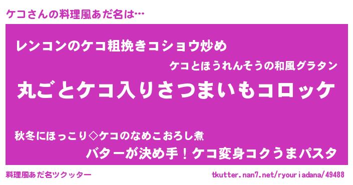 | 男性向けラノベタイトル風あだ名 | 『魔弾の王とケコ』『魔法科高校のケコ』 |