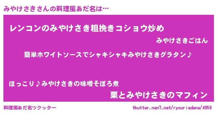 | ヘコむあだ名 | 『みやっぺ』『みやにゅー』『つくし』 |