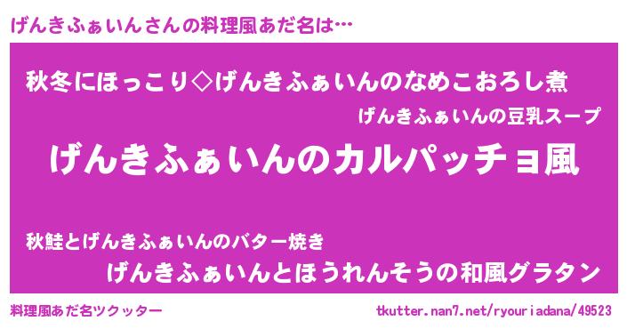 | 意味不明あだ名 | 『住所不定無職げんきふぁいん(9歳)』 |
