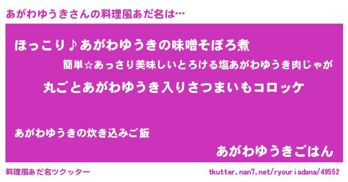 | ヘコむあだ名 | 『あがふぇ~』『あがわゆうき(遠い目)』 |