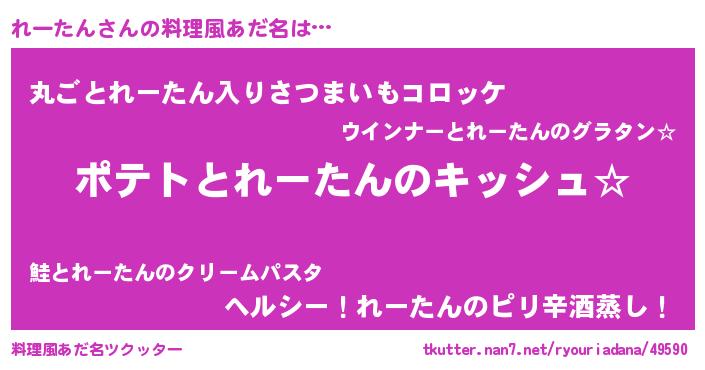 | 女子向けラノベタイトル風あだ名 | 『れーたんの卵を拾いまして』 |
