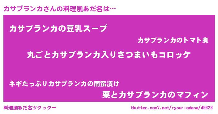 | 男性向けラノベタイトル風あだ名 | 『この素晴らしい世界にカサブランカを!』 |