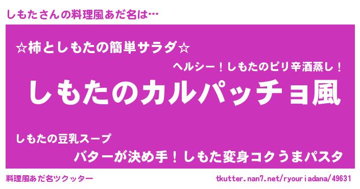 | 女子向けラノベタイトル風あだ名 | 『しもたが死なない童話 林檎のしもたの診療簿』 |
