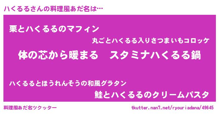 | 意味不明あだ名 | 『ハくるるフォーエバー』 |
