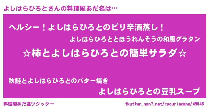 | ヘコむあだ名 | 『よしお』『よしはらひろと(笑)』 |