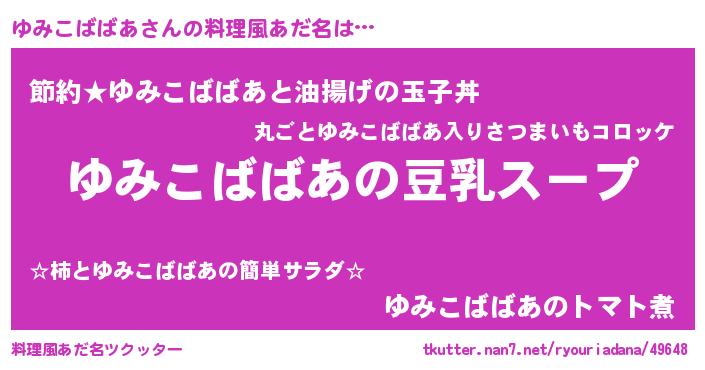 | 女子向けラノベタイトル風あだ名 | 『ゆみこばばあは平凡を望む』 |