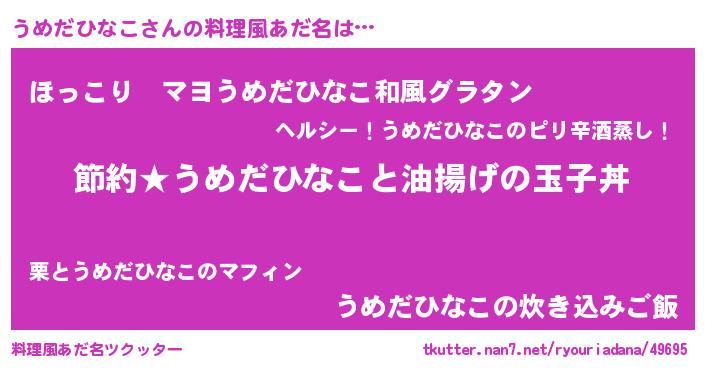 | ヒーロー風カッコイイあだ名 | 『スーパーウメダヒナコ』『仮面ウメダー』 |