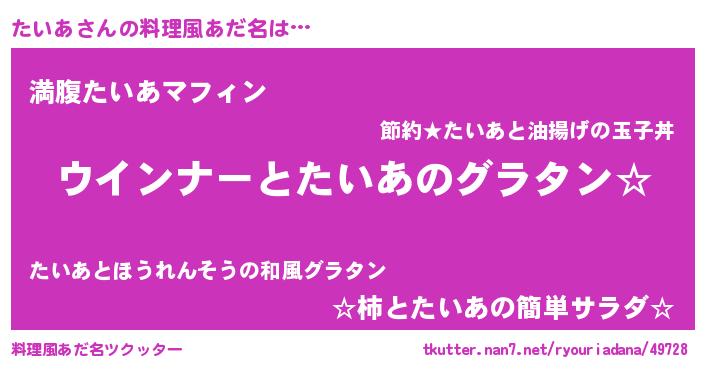 | ヘコむあだ名 | 『豆乳』『たいあ(笑)』『たいっ子』 |